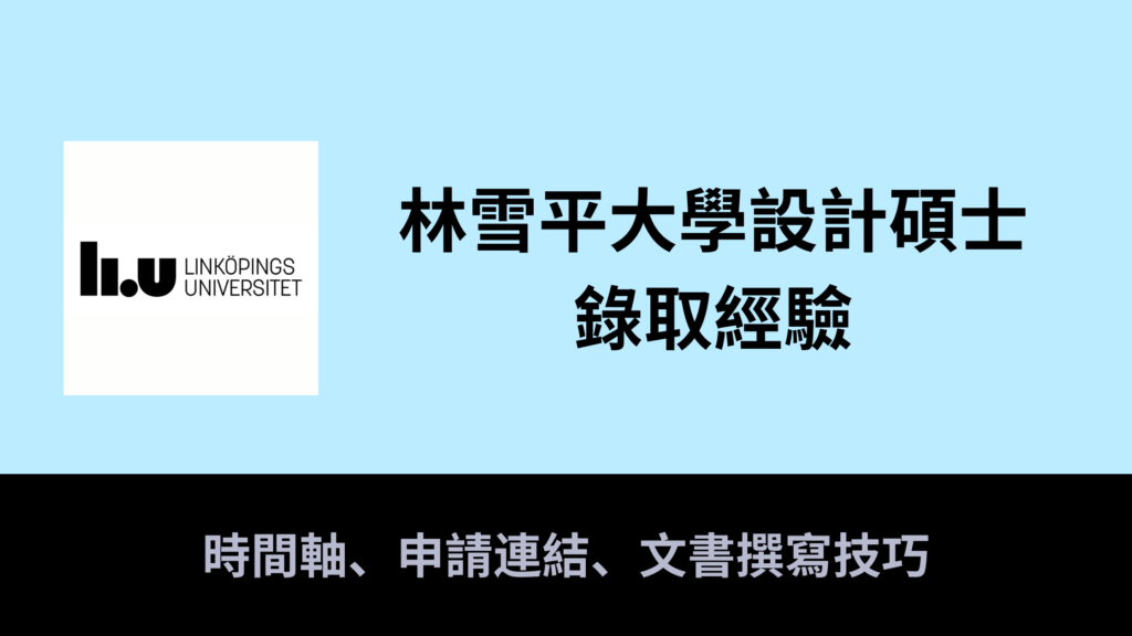 本篇將分享我申請並成功錄取 林雪平大學設計碩士 Linköping University – Master of Design 的完整過程,你會在文章中看到: